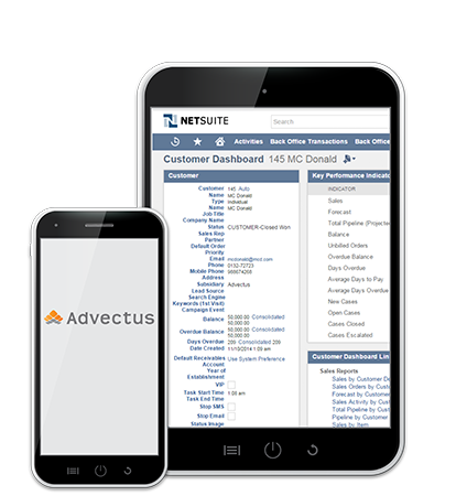The Advectus DMS Platform is the most modern, agile, and flexible DMS available to the marketplace. Built on NetSuite’s state-of-the-art cloud-based ERP (Enterprise Resource Planning), Advectus offers a robust suite of business solutions for Sales, Service, Parts, Accounting/Financial Management, Reporting, and CRM. Advectus leverages NetSuite’s “One Data Model” to provide complete transaction and information visibility, giving you a real-time 360° view of your customer. Advectus delivers the tools you need to manage and grow your business, all at a lower Total Cost of Ownership.